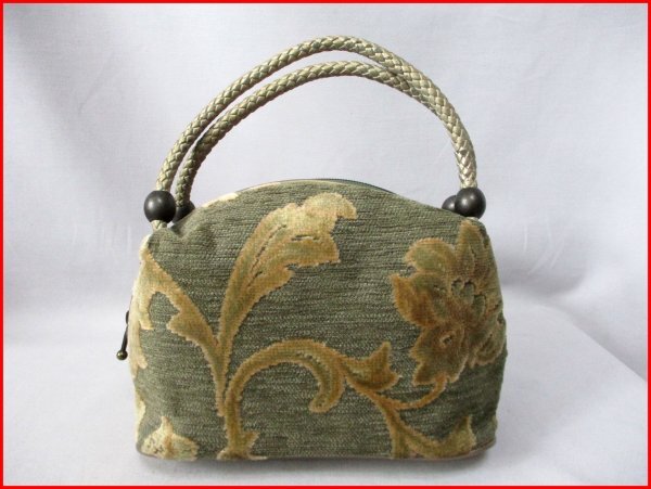 - ハンドバッグ 花モチーフ柄◇グリーン系 W23cm