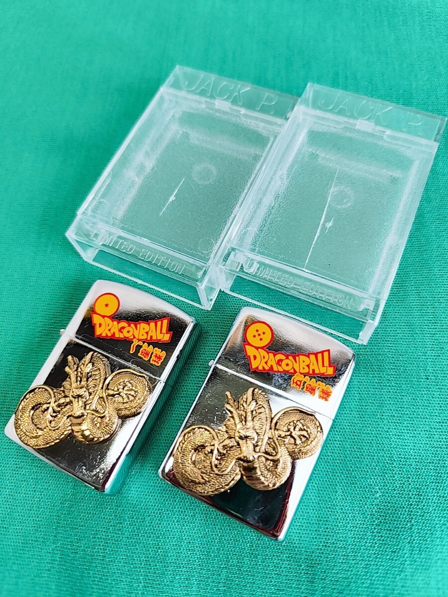 > ドラゴンボール オイルライター 2点セット 一星球 五星球 ケース付き ライター DRAGONBALL 神龍 ジッポ風 当時物 コレクション(0522)