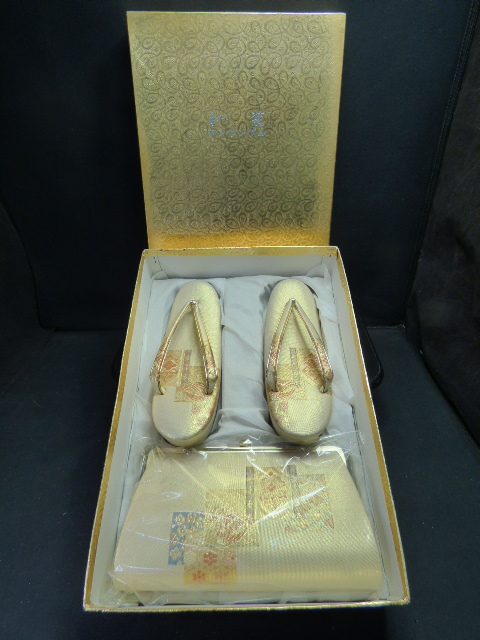 - ま840.和装小物 2点セット 草履 バッグ 振袖 訪問着 ゴールド