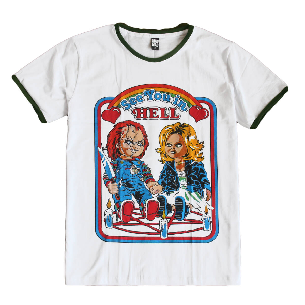 - チャッキー ティファニー チャイルドプレイ ホラー映画 ストリート系 デザインTシャツ おもしろTシャツ メンズ 半袖★tsr0568-grn-xl