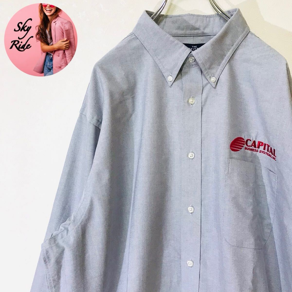 - 【美品】LANDS'END OUTFITTER ランズエンド capital刺繍 メンズ ボタンダウン 長袖シャツ ビッグシルエット XXL グレー 古着 #TT0192
