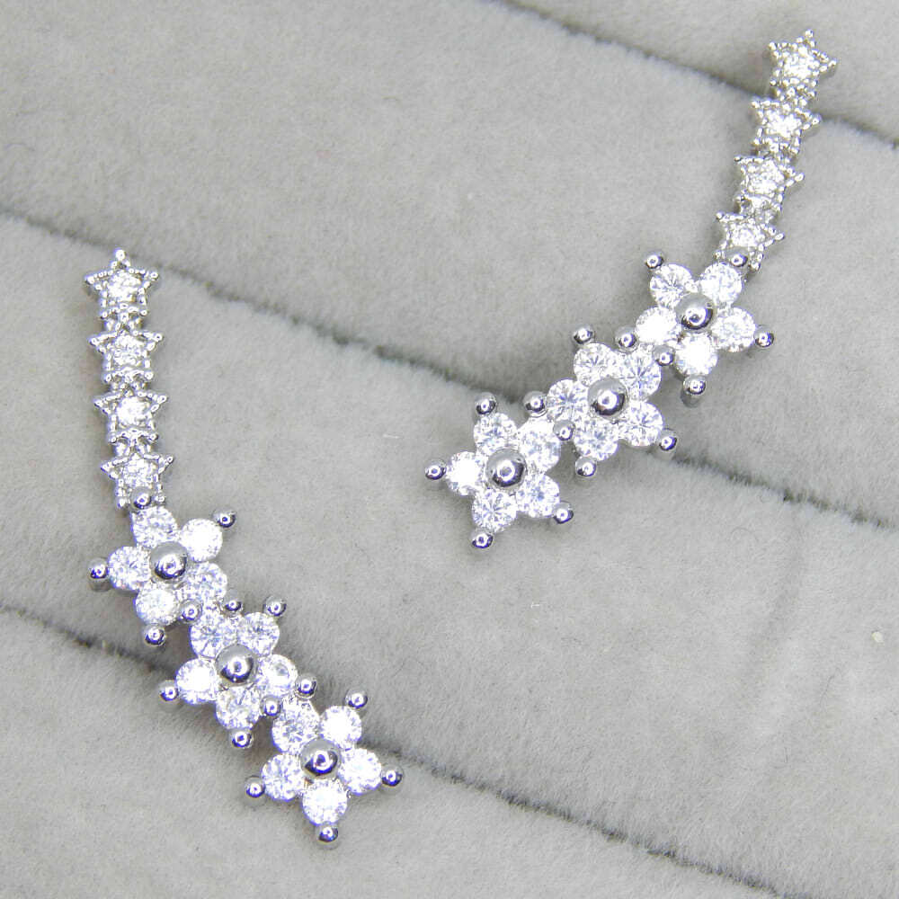 - 新品★送料無料 19連CZダイヤモンドピアス レディース アクセサリー 極上の逸品 絢爛 厳選 星 ジルコニア シルバー925 限定 プラチナ仕上