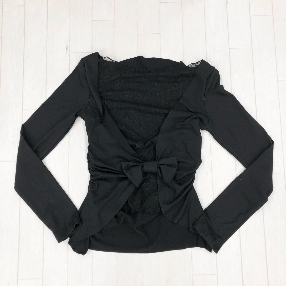 > 1759〓 Dazy デイジー 長袖カットソー レディース サイズM ブラック トップス ブラウス リボン レース 透け カジュアル