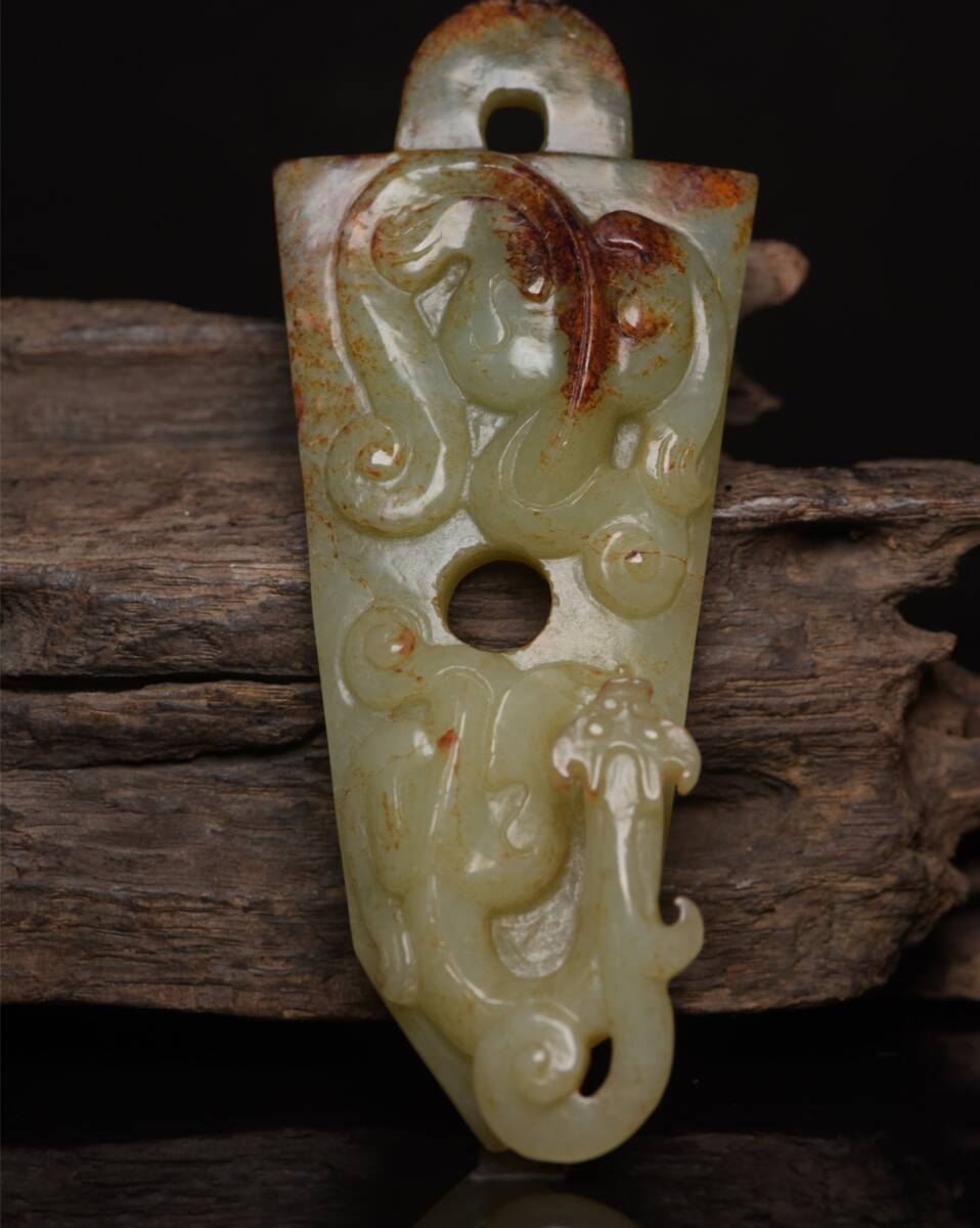- 『館蔵珍品 和田玉製 細密彫 兵器 置物 賞物』稀少珍蔵品 古賞物 貴重物品 収蔵品 中国古美術 時代物 古董品
