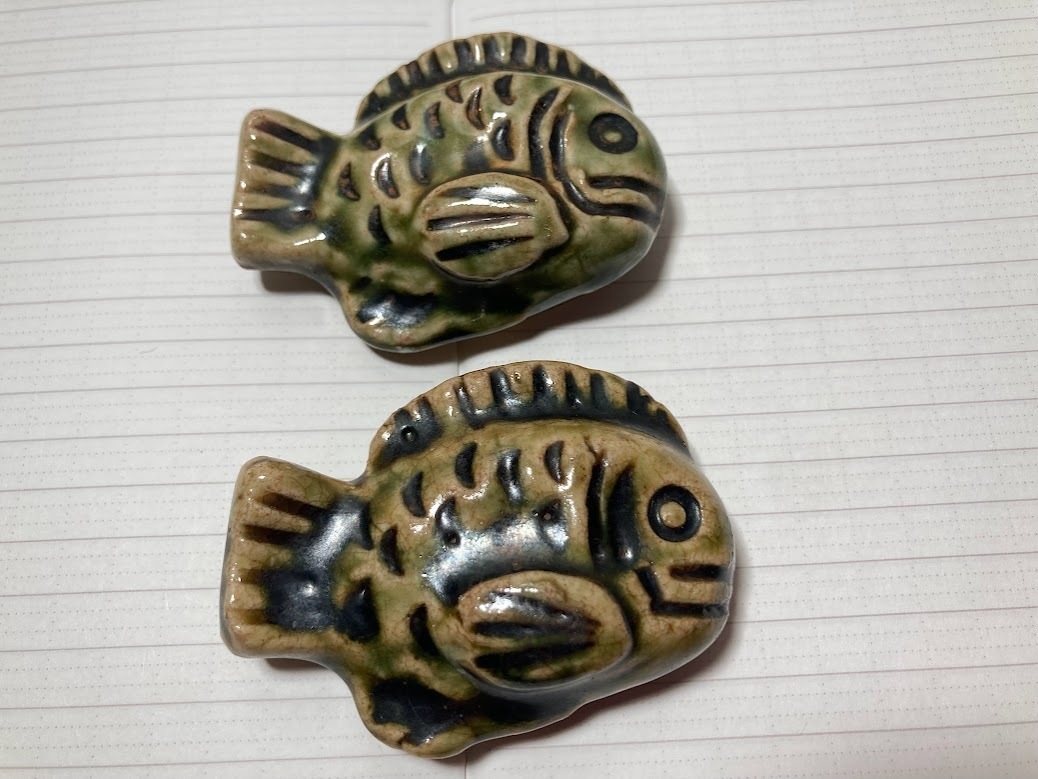 - 本物保証 北大路魯山人 箸置き 2点セット ペア 魚【美品】ロ 刻印あり 本物返品OK 250308−11