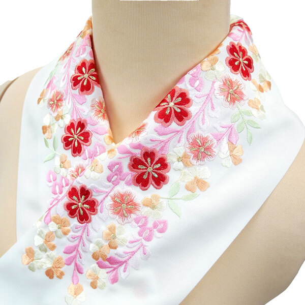 - 刺繍 半襟 半エリ he-479 白地 振袖 訪問着などに 半衿 吹き寄せ柄