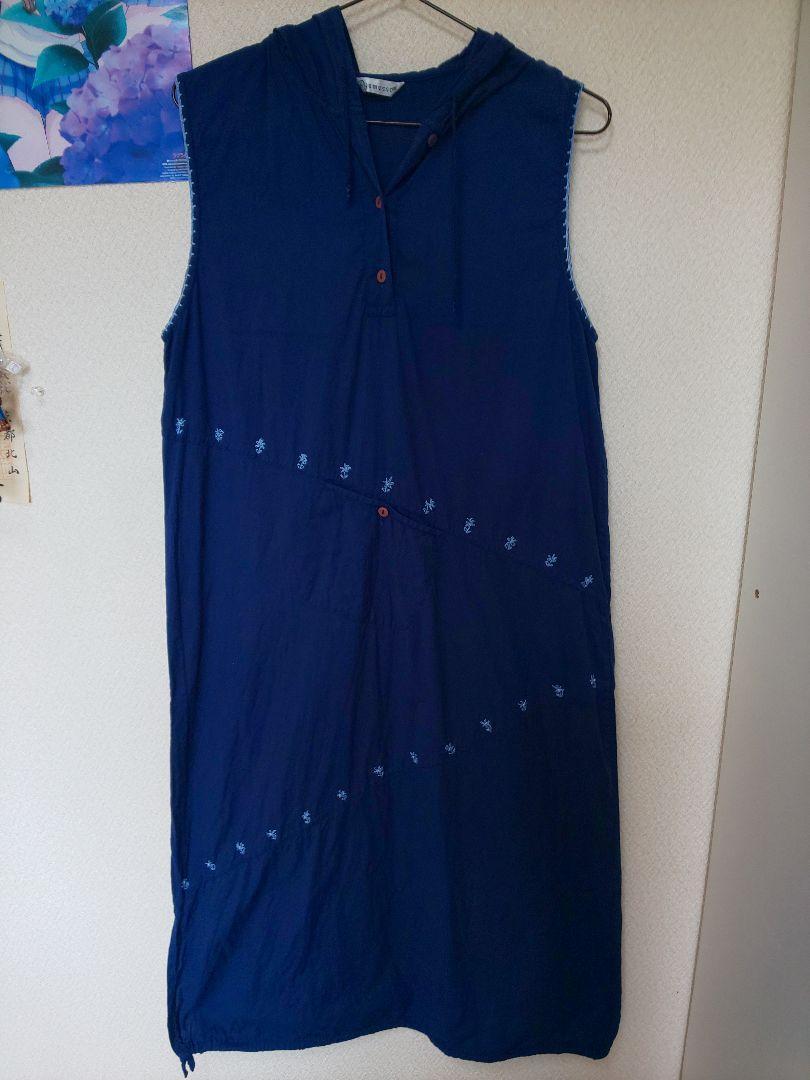 - 値下げ★フード付きお花刺繍のワンピース★青★M