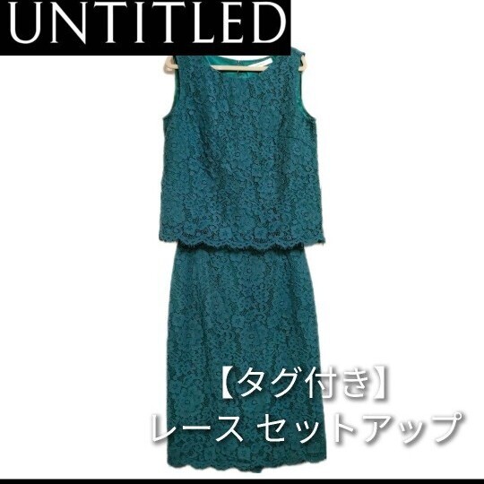 - 新品タグ付【UNTITLED(アンタイトル) 】レース セットアップ グリーン系 ノースリーブ/タイトスカートひざ丈
