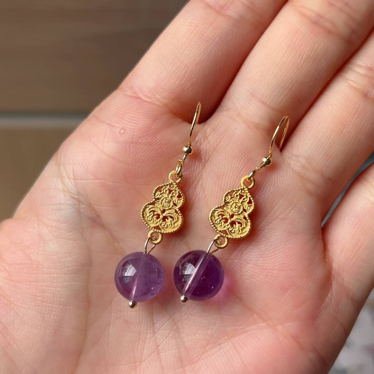 - 訳あり◇ブラジル産◇紫水晶◇アメジスト◇ピアス◇天然石◇パワーストーン◇巾着袋付き◇プレゼントにも037R5247