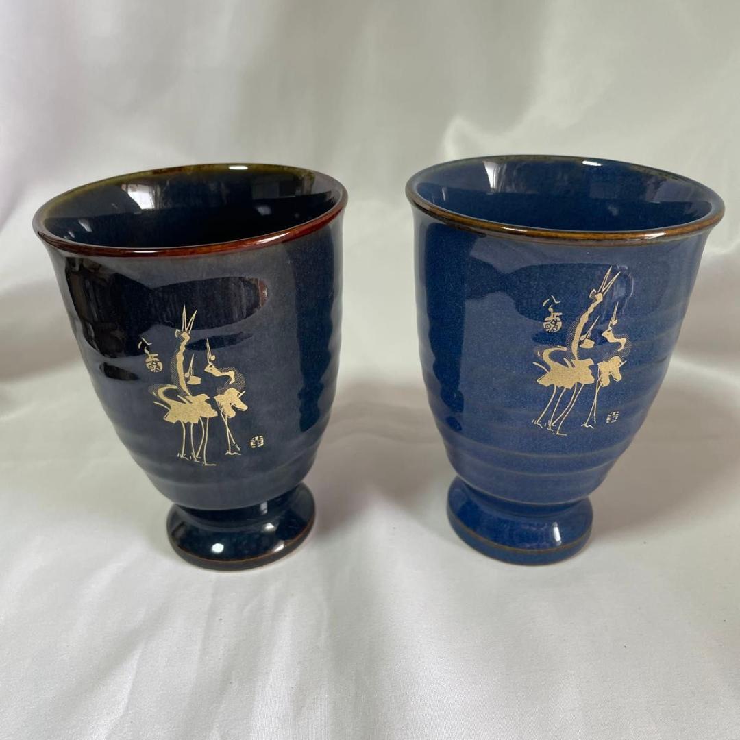 - 258 湯呑み 2個セット 鶴の絵柄 陶器 ヤンマーノベルテイー