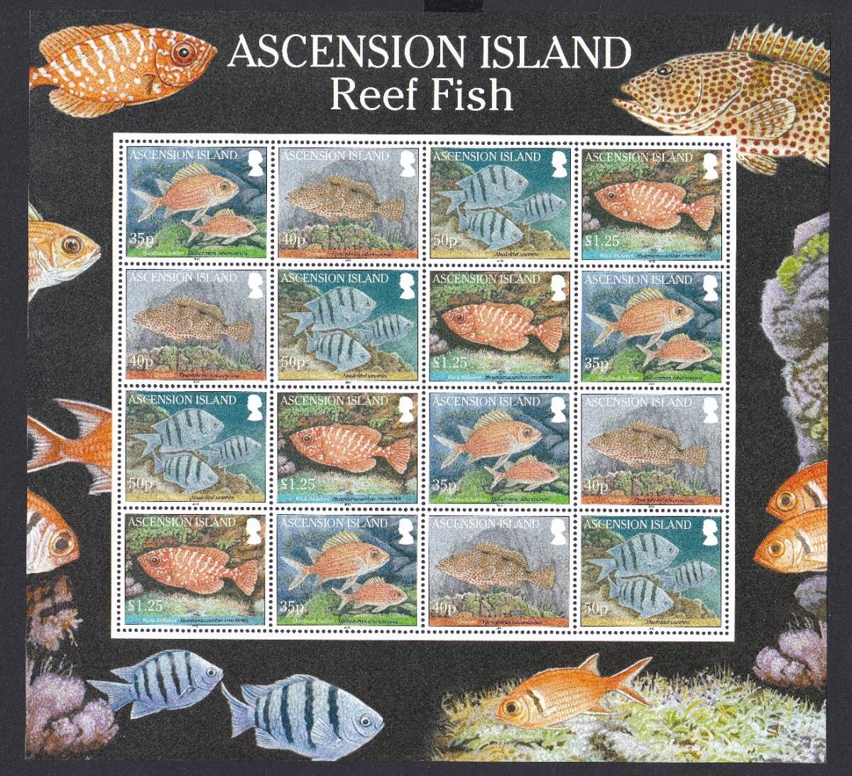 - アセンション 魚(4種,16枚シート) MNH