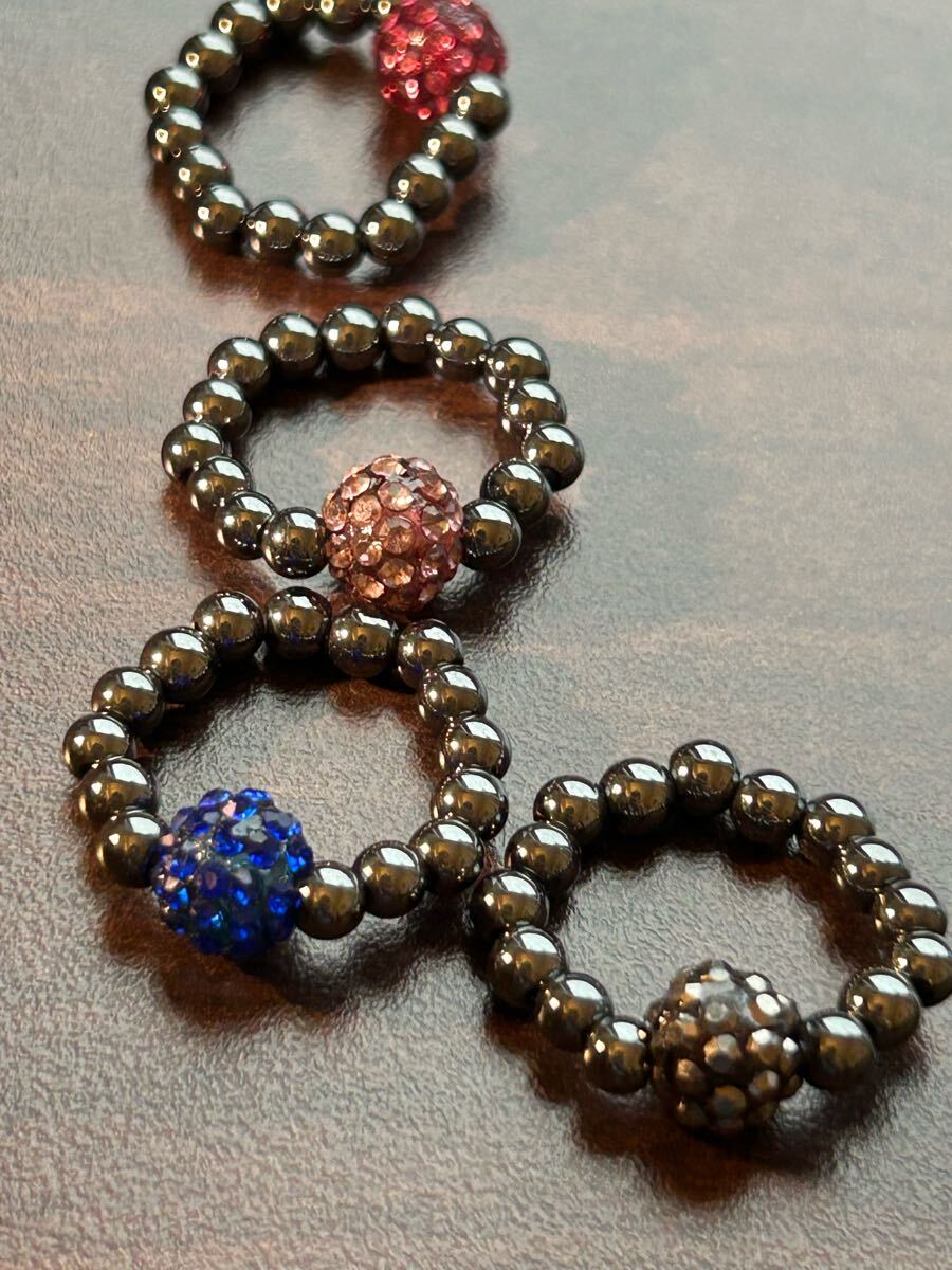 - 指輪4色セット クリスタルボール パワーストーン テラヘルツ鉱石 天然石ゲルマニウム 伸縮性があります