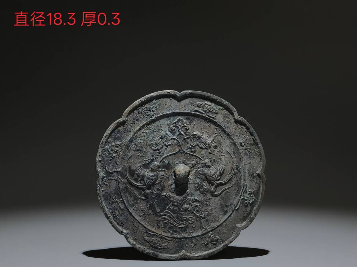 - 【超珍館蔵】唐 青銅製 雙鳥花卉紋鏡 銅鏡 青銅器 置物 賞物 古賞物 古董品 古美術品 時代物 旧家蔵出 稀少珍蔵品