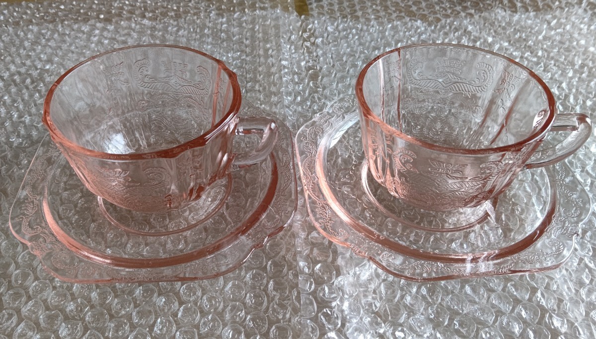 - インディアナ マドリッド カップ ソーサー 2客 セット ピンク ディプレッショングラス