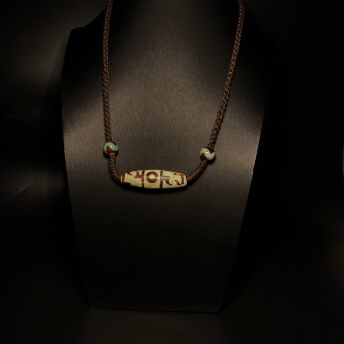 - 清 古瑪瑙彫 包漿瑪瑙 蓮師法器三眼天珠 高油 項鏈 箱付 置物擺件 時代物 古董品 骨董 旧家藏出 唐物 中国古玩 古美術品