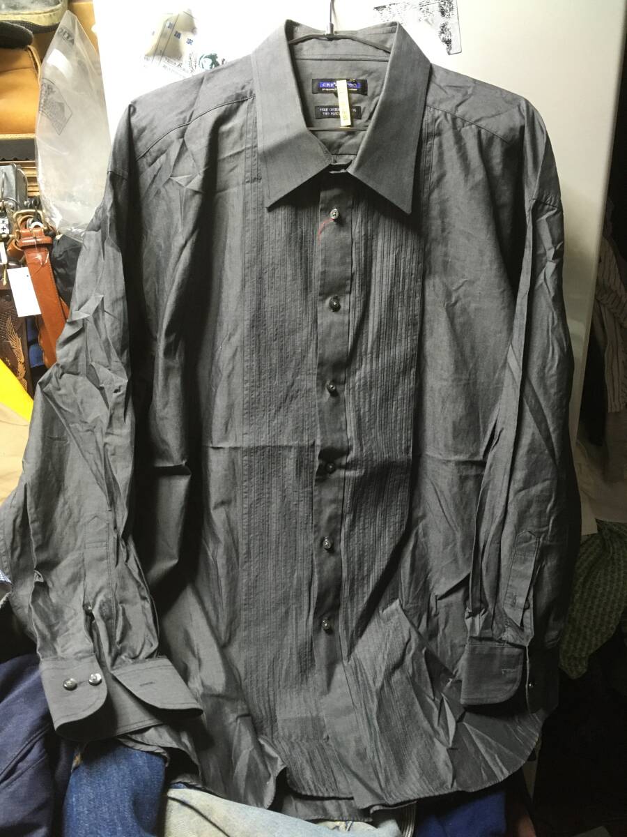 > 2505クレスジーコムCRES xe:comプリーツ切替ドレスシャツ4Lイカ胸ビッグBIGサイズ ワイシャツ ブロード