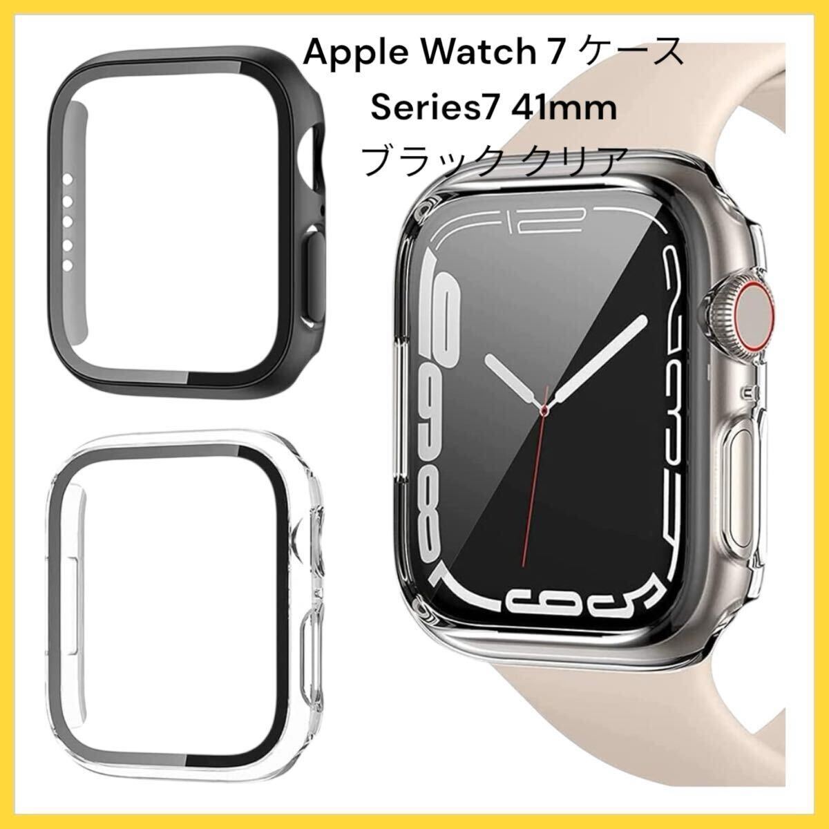 > 【2枚セット】 Apple Watch 7 ケース Series7 41mm アップルウォッチ保護カバー ガラスフィルム 一体型 PC素材(ブラック,クリア)