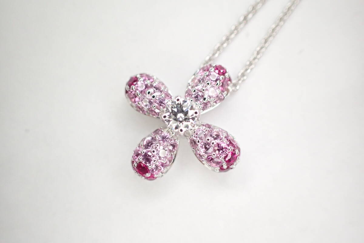 - 22/美品 ミキモト K18WG ルビー ピンクサファイア ダイヤ ネックレス