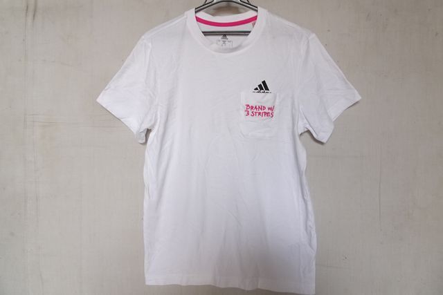 - adidas/アディダス/半袖Tシャツ/左胸ポケット/ポケット上ロゴプリント/文字ししゅう/シンプル/白/ホワイト/Mサイズ(5/26R7)