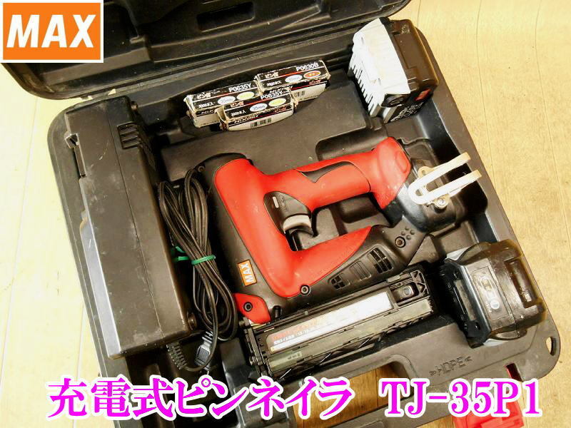 > 〇 MAX マックス 充電式 ピンネイラ TJ-35P1 バッテリー2個 充電器 コードレス 14.4V ネイラ 電動工具 ピン釘打機 ピン打ち No.4925