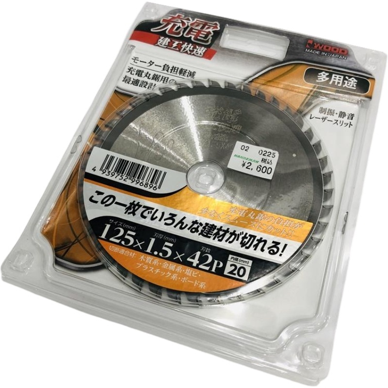 > アイウッド 建工快速 充電 チップソー 多用途 125×1.5×42P 内径20mm No.99689 マルノコ刃 充電丸鋸シリーズ 【新品未開封品】 22505K590