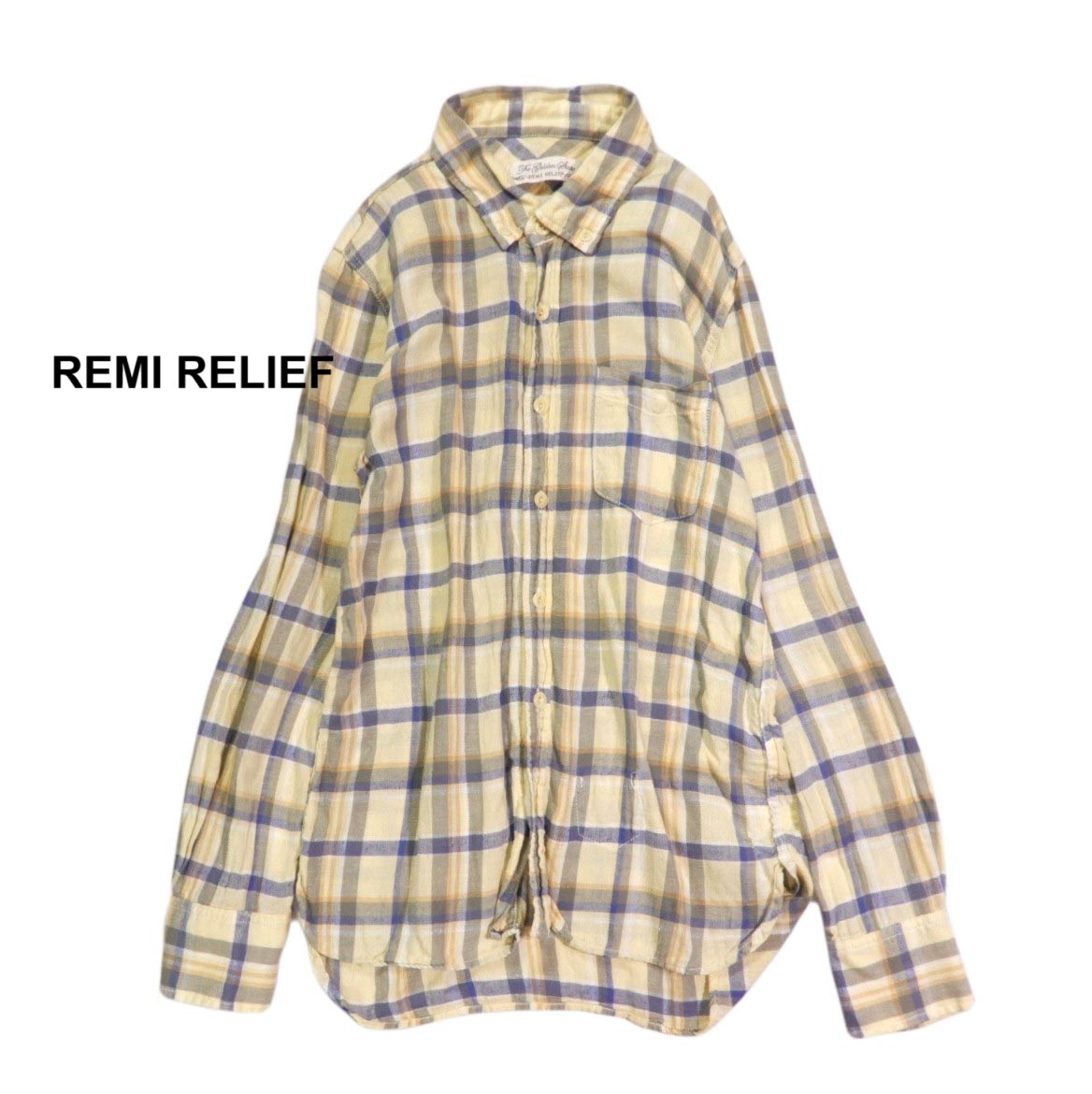 - レミレリーフ REMI RELIEF コットン リネン チェック シャツ S
