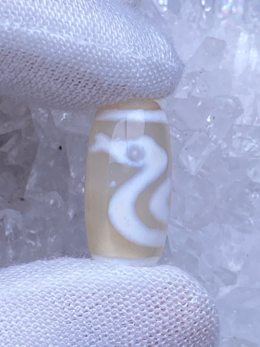 - 即決 0522e345 新入荷★【チベット老玉髄白蛇天珠】★ 20x10mm(新品)