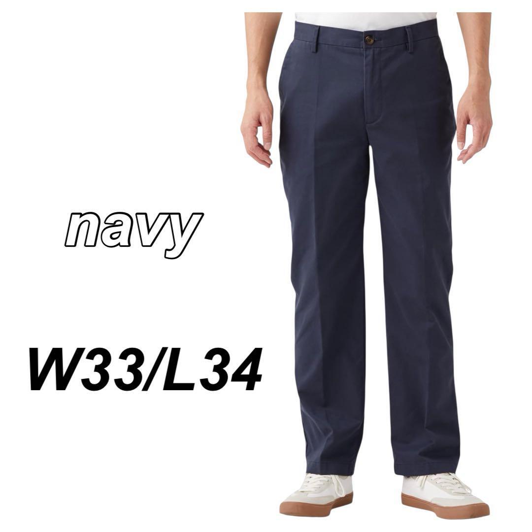 - チノパン ノータック 防シワ加工 クラシックフィット メンズ ネイビー Lサイズ