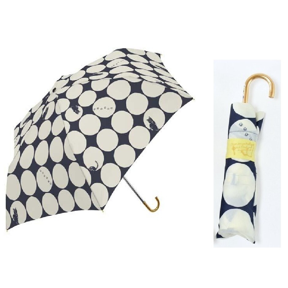 - 【即決】★折り畳み傘 大きい水玉と猫★ 55cm 三国 耐風楽々ミニ 風に強い ネコ 折りたたみ傘 メッセージタグ付 // S2100101