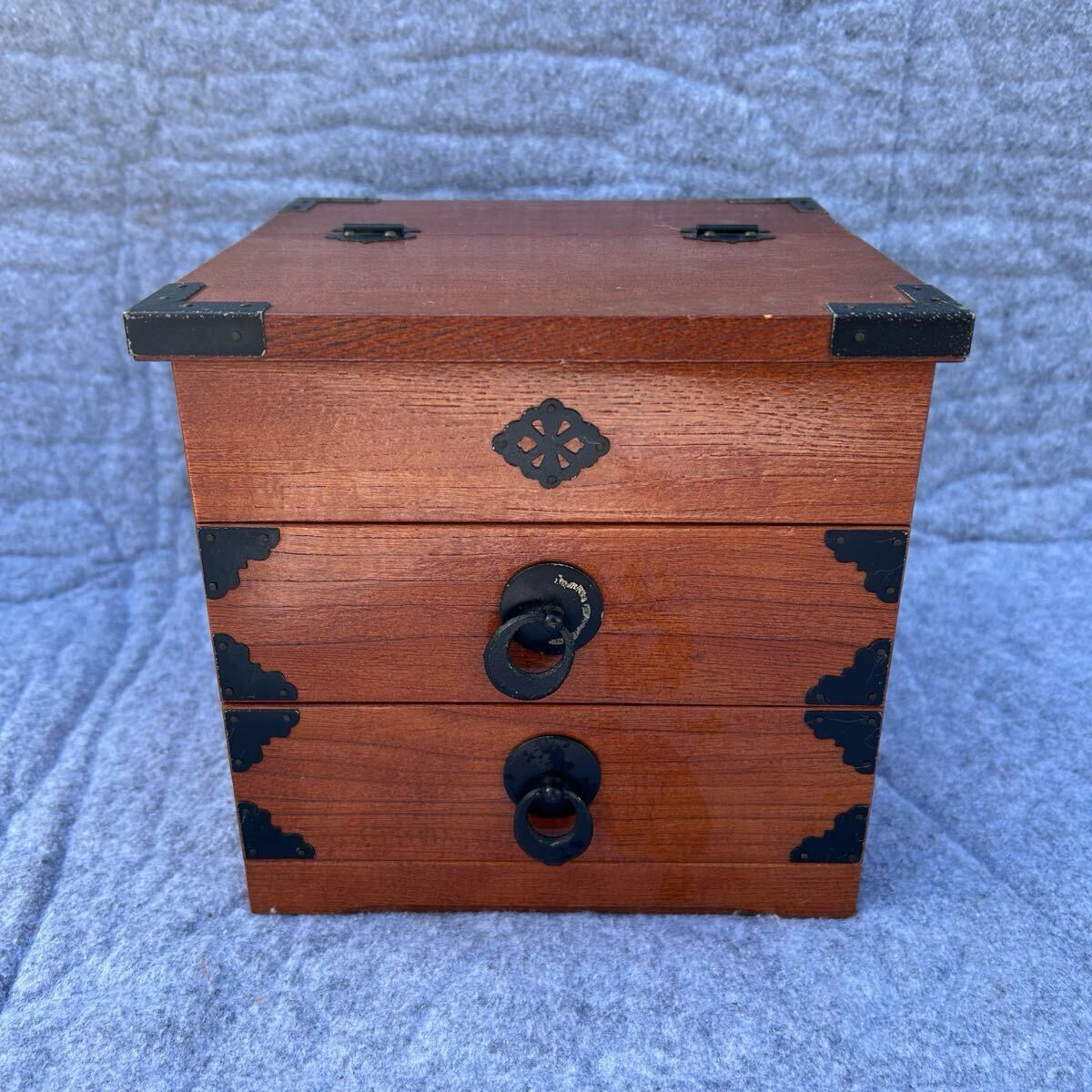 - 小箪笥 裁縫箱 木製 小引き出し 小物入れ 引き出し 昭和レトロ 収納 アンティーク インテリア レトロ 鋲 金具