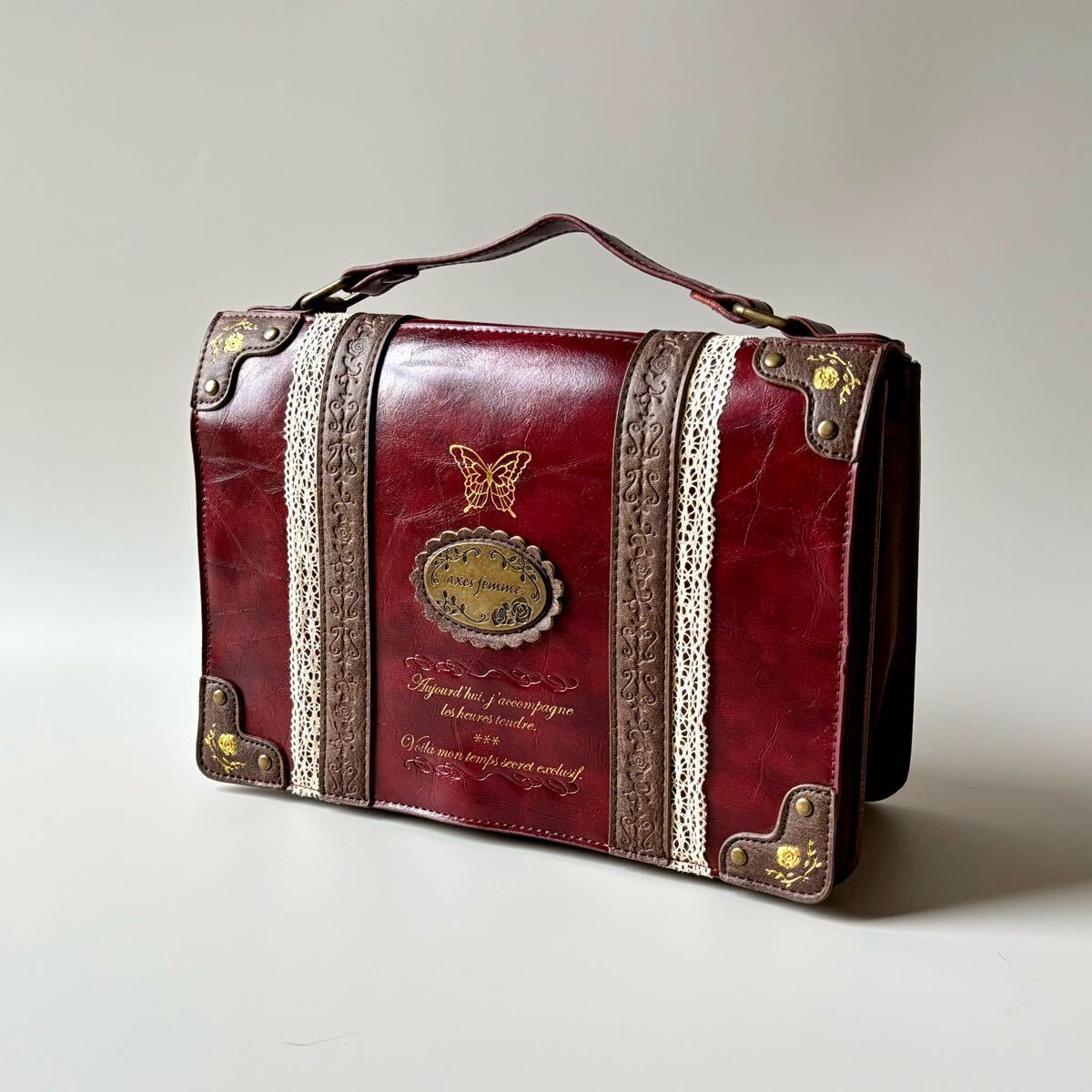 - 【難有 画像と説明ご確認を】 axes femme ブック バッグ アクシーズファム 本型 ショルダーバッグ アンティーク風 赤 レッド クラシカル