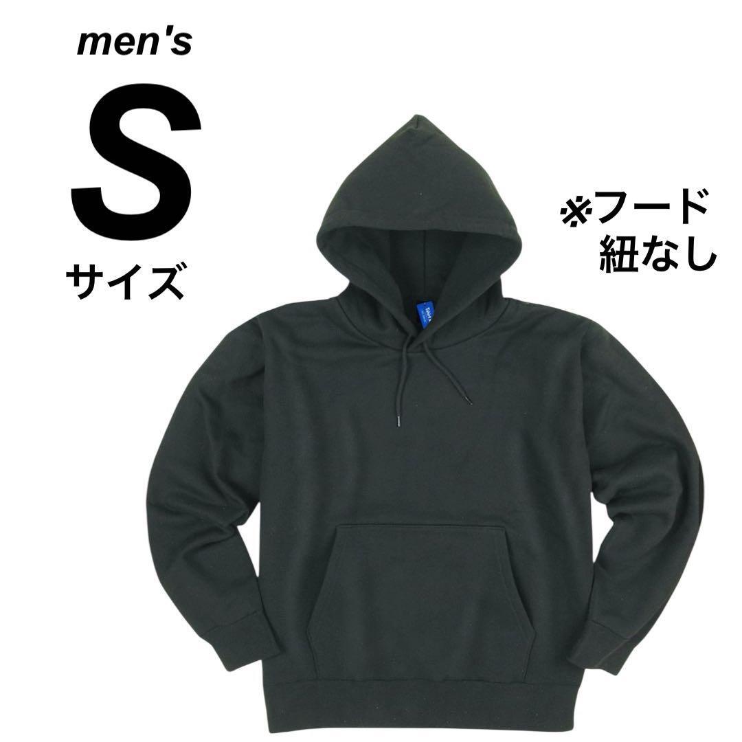 - パーカー ブラック Sサイズ メンズ 無地 厚手 裏起毛 プルオーバー 紐なし