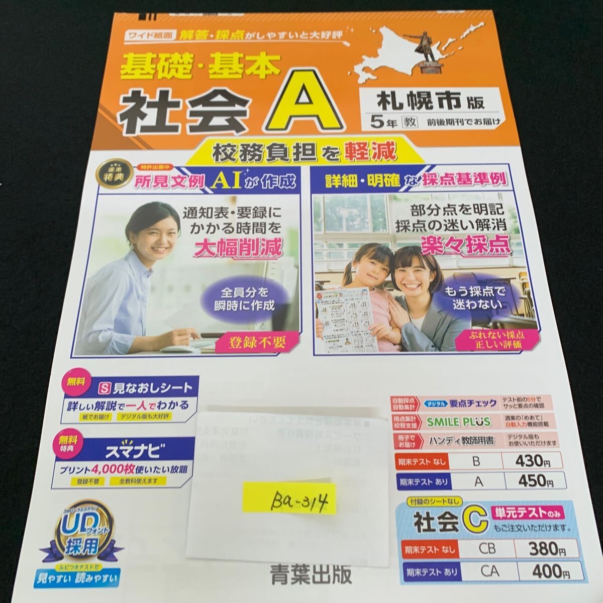 - Ba-314/5年生/札幌市版/青葉出版/小学生 国語 算数 英語 社会 理科 漢字 家庭科 テキスト テスト用紙 教材 文章問題 計算/L7/705029