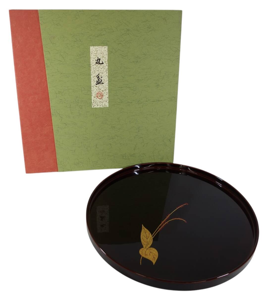 - ビンテージ 象彦 水引草 溜丸盆 元箱付 1990年代 KSN705