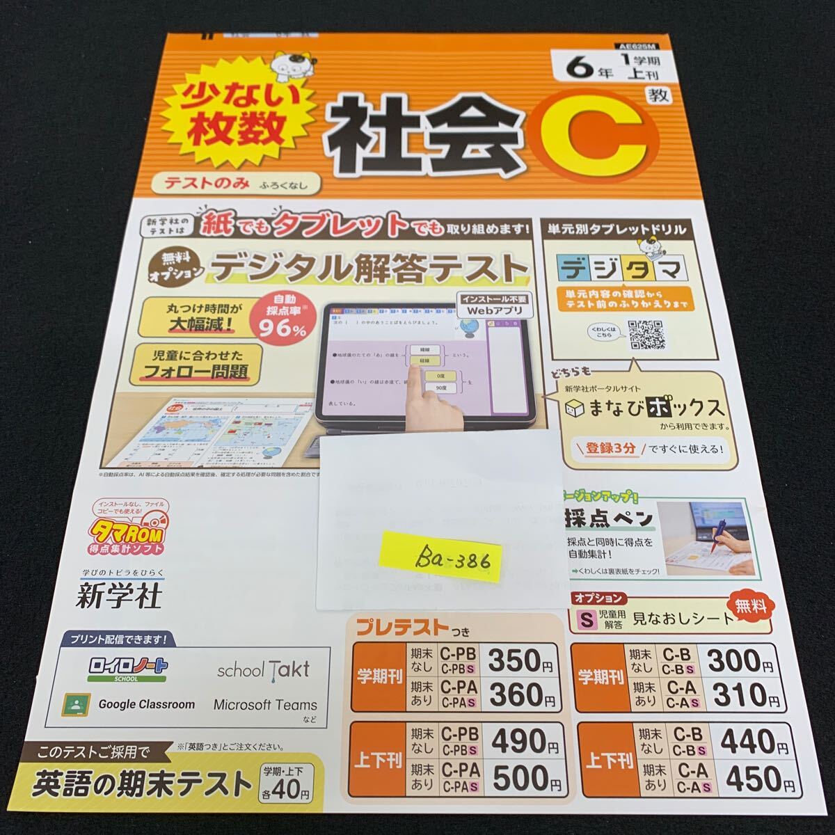- Ba-386/6年生/1学期/上刊/新学社/小学生 国語 算数 英語 社会 理科 漢字 家庭科 テキスト テスト用紙 教材 文章問題 計算/L7/705029