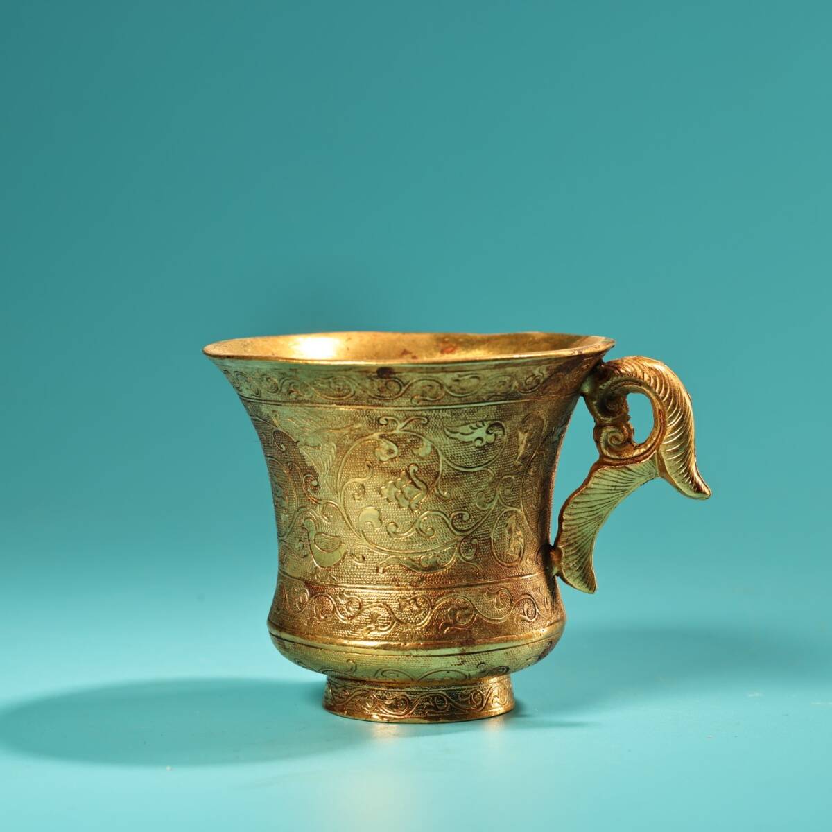 - 蔵友旧蔵出 銅製 塗金 花卉紋 酒杯 貴重品 置物 古賞物 中国古玩 中国古美術品