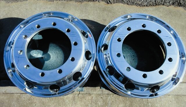- 送料無料 新車外し 美品 アルコア アルミホイール ISO 平面座 22.5×7.50 162 10穴 フロント用 鏡面仕上げ済み 2本セット