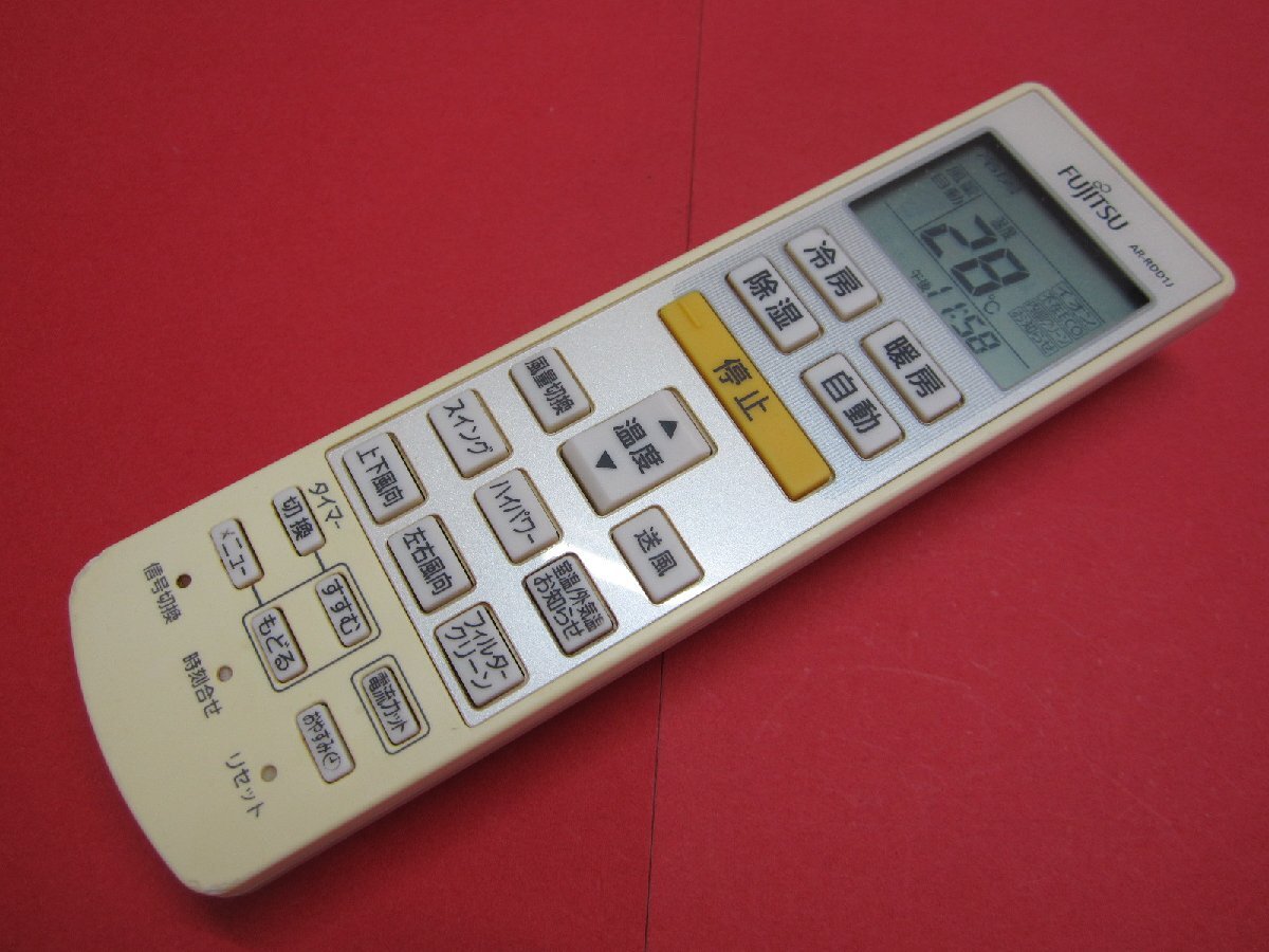 > HRZ-1■富士通 色焼け有りますが、動作は大丈夫♪ エアコンリモコン AR-RDD1J 動作保証