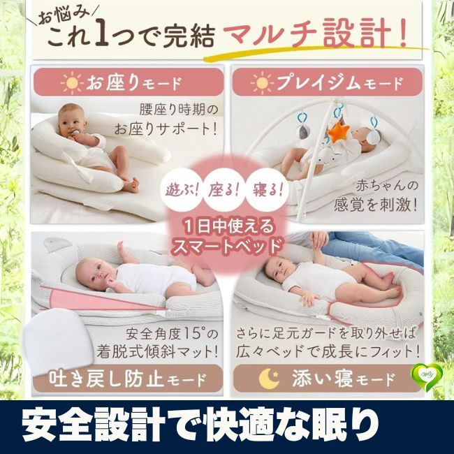 - 【安全設計で快適な眠り】ベッドインベッド 新生児 添い寝 折り畳み式 通気性 クッション付き 高さ調整可 洗濯可能 持運便利 人気 おすすめ