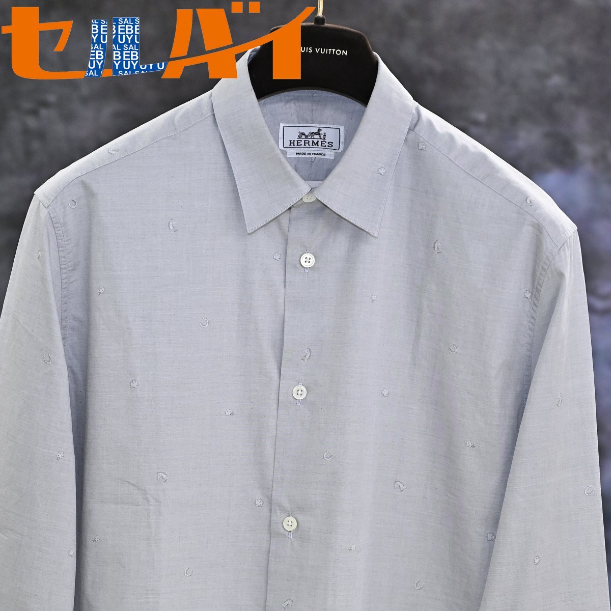 - 本物 極上品 エルメス 極希少 セリエ釦 ピュアコットン アイコンプリントシャツ メンズ40 トップス ジャケット 国内正規品 HERMES