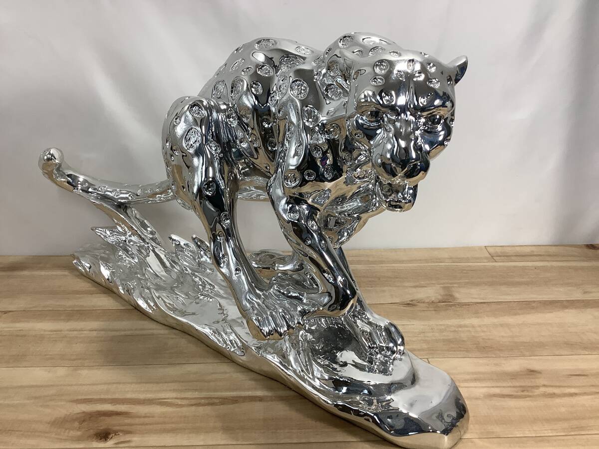 > ヒョウ 置物 オブジェ モダン 風水 シルバー 56cm 動物 豹 ひょう パンサー アニマル ディスプレー 贈り物 インテリア かわいい