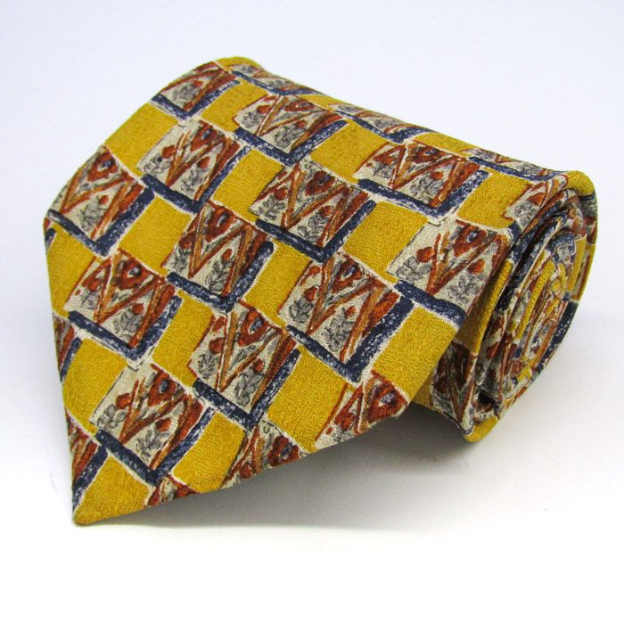 - ウンガロ ブランド ネクタイ シルク 総柄 伊製生地 PO メンズ イエロー emanuel ungaro