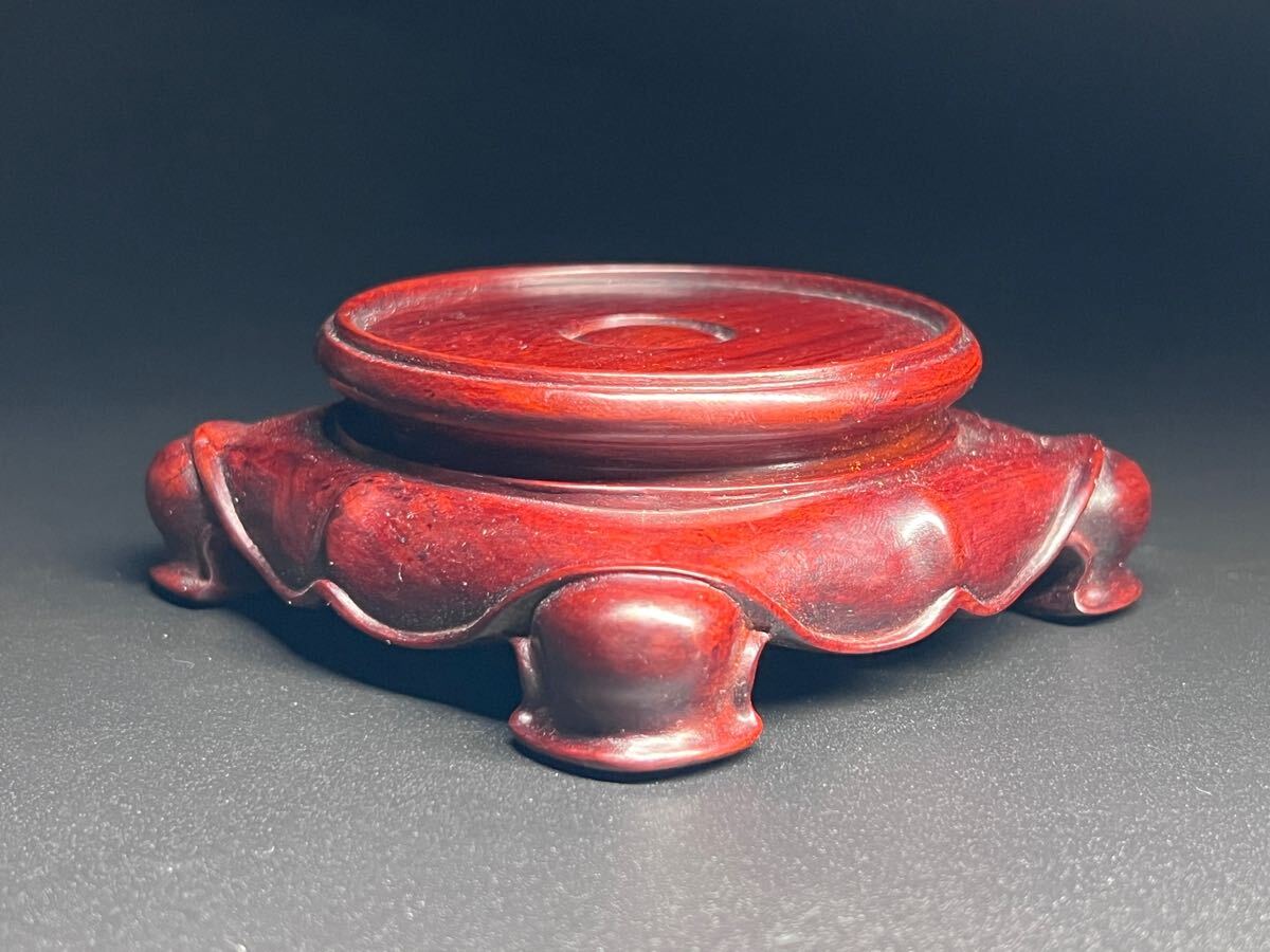 - 中国美術 唐木 丸台 瓶座 花台 香炉台 飾り台 紫檀 木製 亀足 華道具 美品