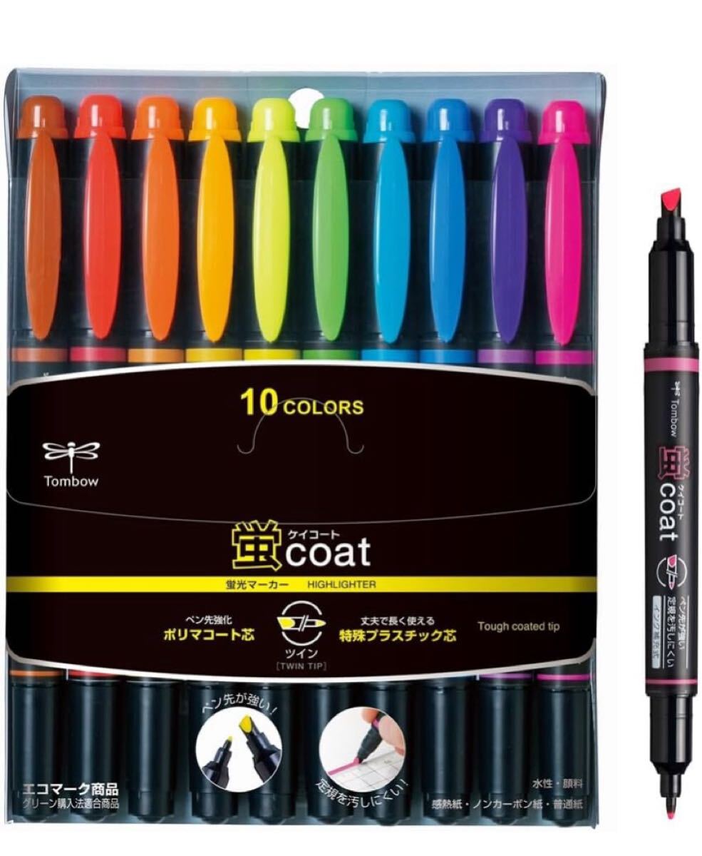 - トンボ鉛筆 蛍光ペン 蛍コート ツインタイプ (強いペン先! ポリマーコート芯) 10色 WA-TC10C