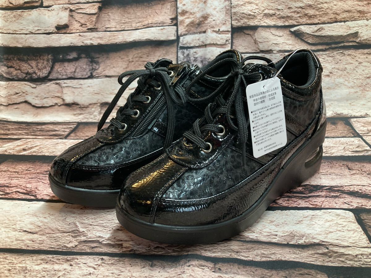 - 人気のレオパード柄!ファスナーで楽々履き脱ぎ!エアー&光沢入りレディース合皮シューズ(ブラック系)1足3,850円が