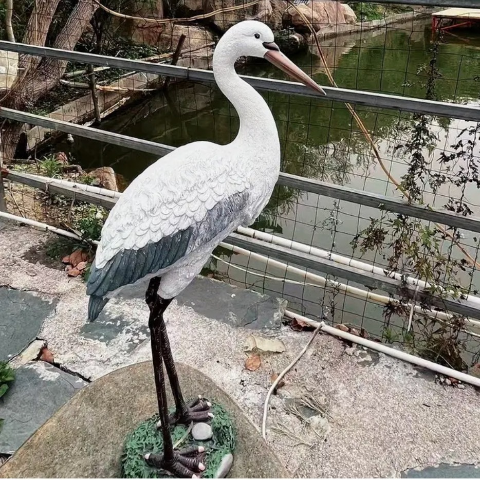 - ミニチュア 置物 コウノトリ リアル 46cm 白い鳥 樹脂像 インテリア エクステリア 庭 動物 レジン おしゃれ アニマル フィギュア t6625