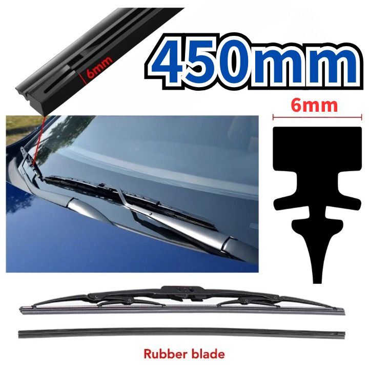 - 6mm交換用ワイパーゴム 450mmカット対応 グラファイト・モリブデン配合 テフロン加工車種水切り性能