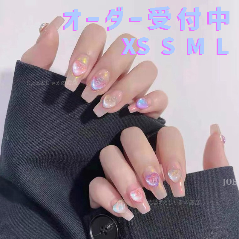 - No.45 M ジェルネイルチップ オーロラ カラフルハート ピンク ちゅるん