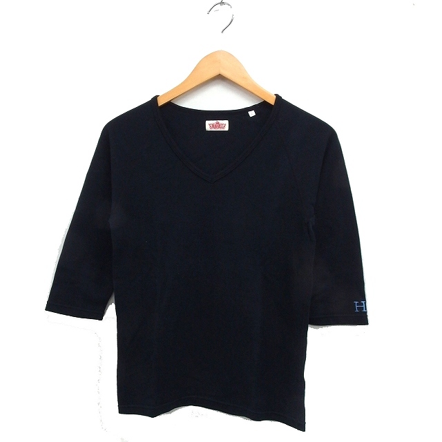 - ハリウッドランチマーケット HOLLYWOOD RANCH MARKET Vネック Tシャツ 7分袖 ロゴマーク刺繍 コットン 綿 2 ブラック 黒 /FT45 レディース