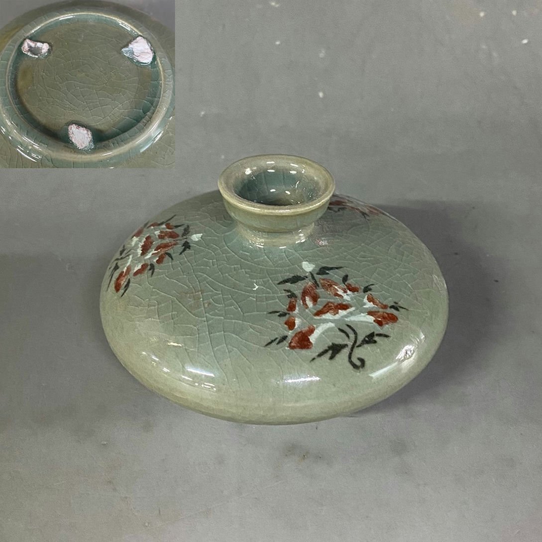 - ▼渡鶴羽▼A0657『朝鮮時代旧蔵』朝鮮古陶 朝鮮古美術 高麗磁 古高麗 李朝 高麗青磁花卉紋水盂